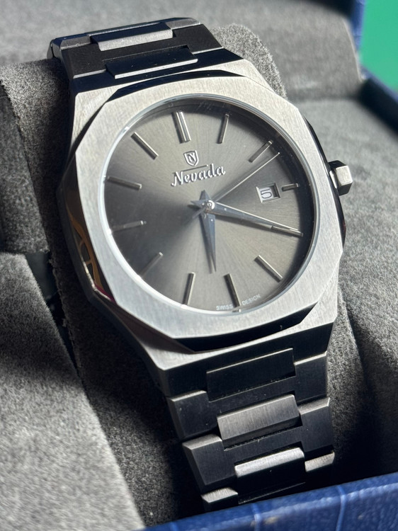 ساعت مچیمردانه نوادا مدل ۱۳۷۵ رنگ مشکی دودی ۵ سال گارانتی